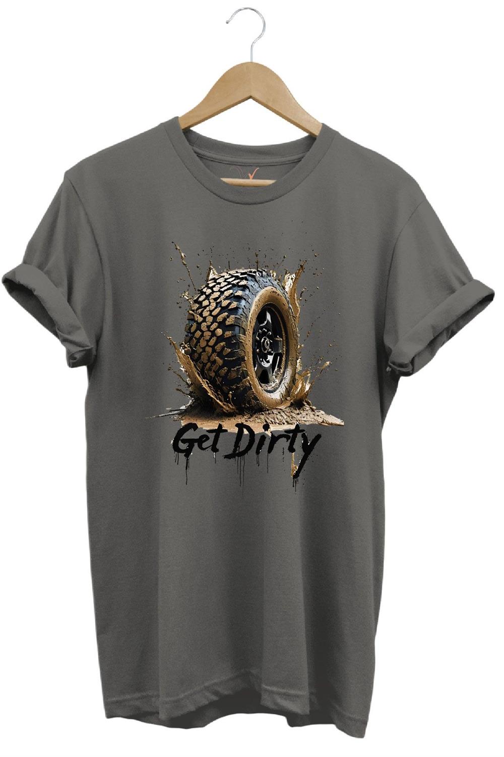 4X4 Off Road Mud Truck Baskılı Dağ Aracı Tekerlek Baskılı %100 Pamuk Regular Fit Unisex T-Shirt - Antrasit (WİDİ646)