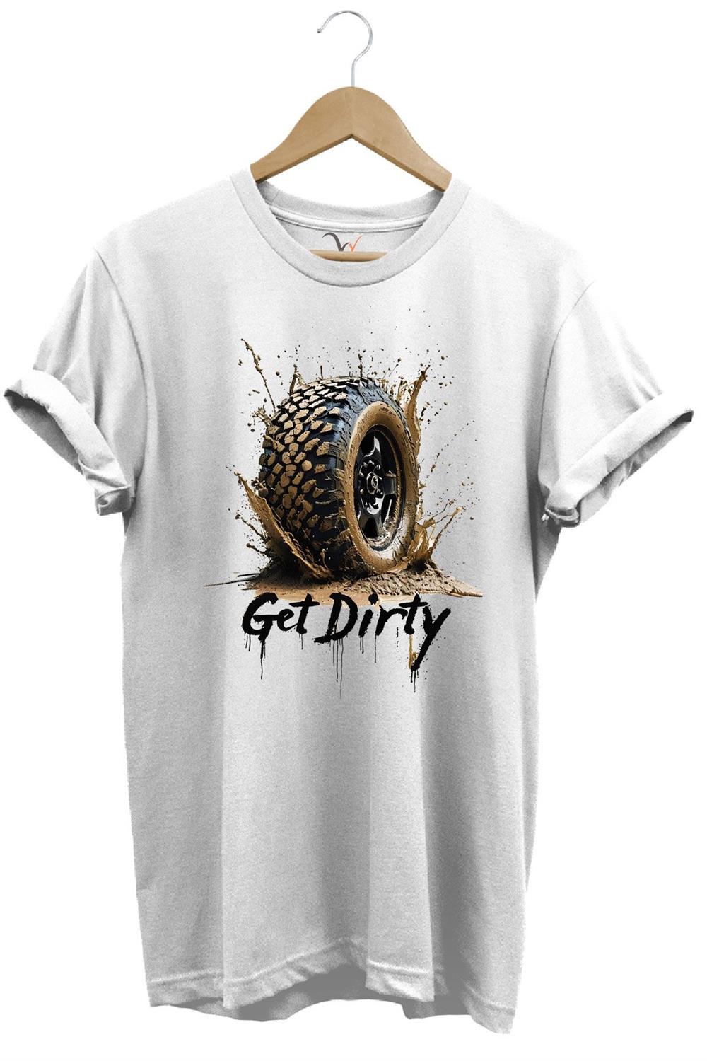 4X4 Off Road Mud Truck Baskılı Dağ Aracı Tekerlek Baskılı %100 Pamuk Regular Fit Unisex T-Shirt - Beyaz