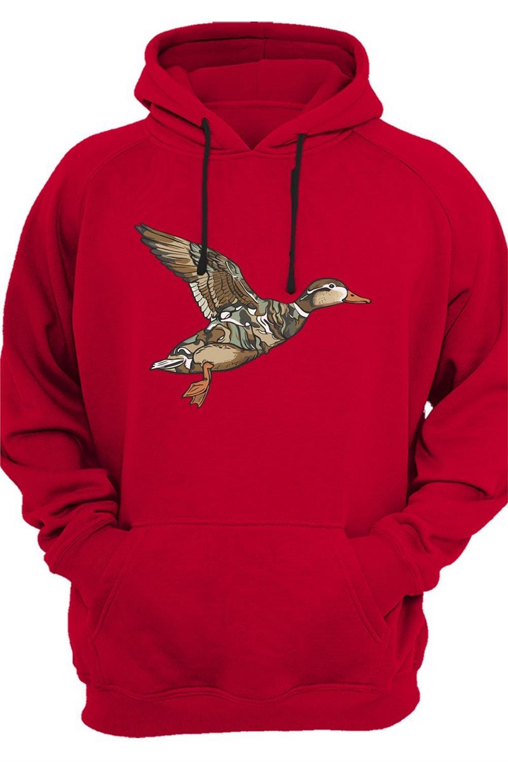 Avcılık Hunter Kamuflaj Desen Ördek Baskılı 3 Iplik Kalın Şardonlu Kanguru Cepli Sweatshirt - Kırmızı (WİDİ641)