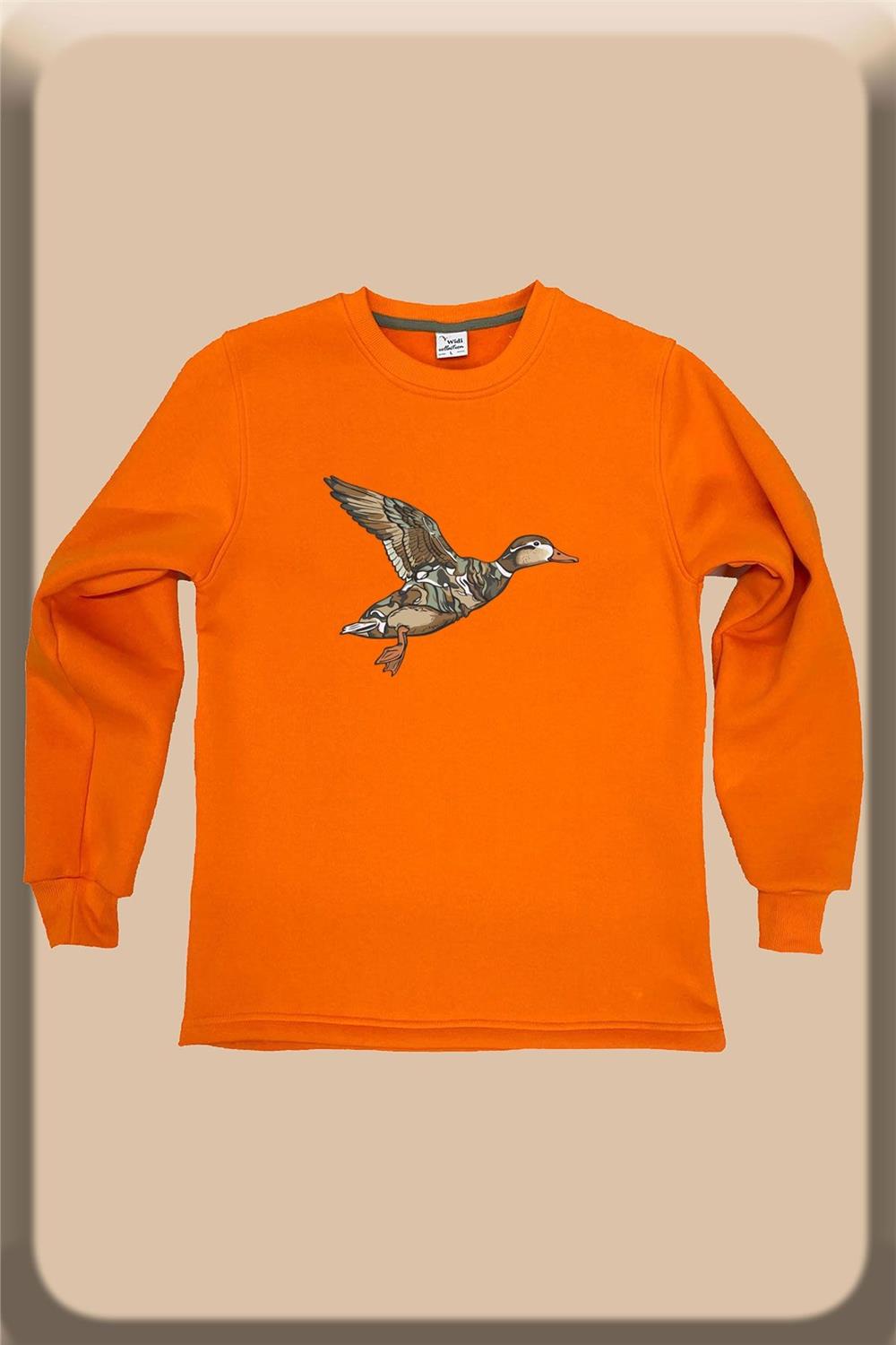 Avcılık Hunter Kamuflaj Desen Ördek Baskılı Regular Fit %100 Pamuk Bisiklet Yaka Sweatshirt - Turuncu (WİDİ643)