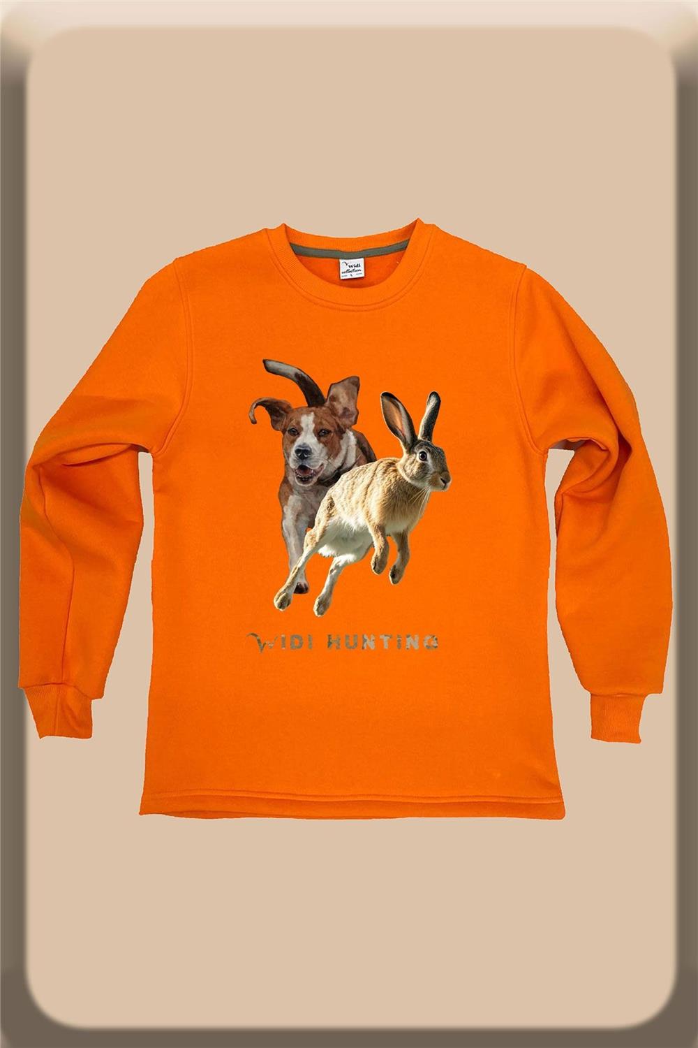 Avcılık Hunting Tavşan Avı Ve Av Köpeği Baskılı Regular Fit %100 Pamuk Bisiklet Yaka Sweatshirt - Turuncu (WİDİ661)