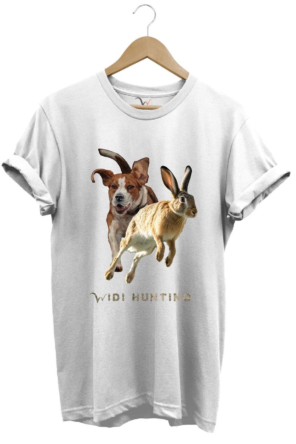 Avcılık Hunting Tavşan Avı Ve Av Köpeği Tasarım Baskılı %100 Pamuk Regular Fit Unisex T-Shirt - Beyaz (WİDİ659)