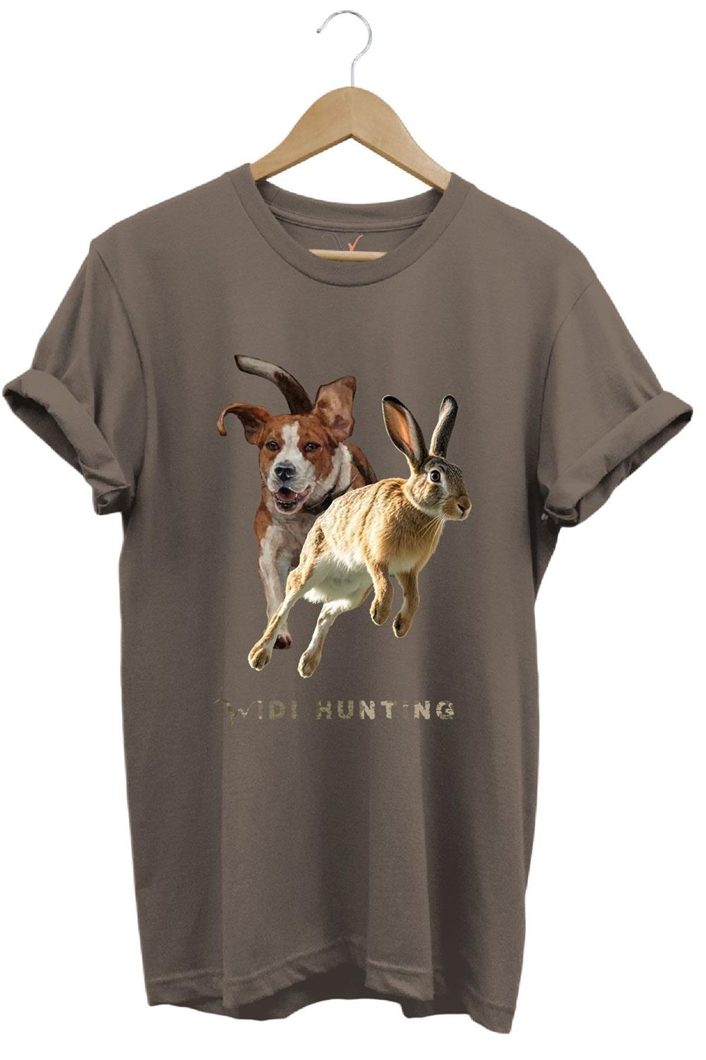 Avcılık Hunting Tavşan Avı Ve Av Köpeği Tasarım Baskılı %100 Pamuk Regular Fit Unisex T-Shirt - Kahverengi (WİDİ659)