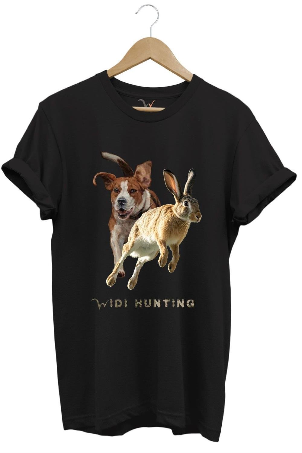 Avcılık Hunting Tavşan Avı Ve Av Köpeği Tasarım Baskılı %100 Pamuk Regular Fit Unisex T-Shirt - Siyah (WİDİ659)