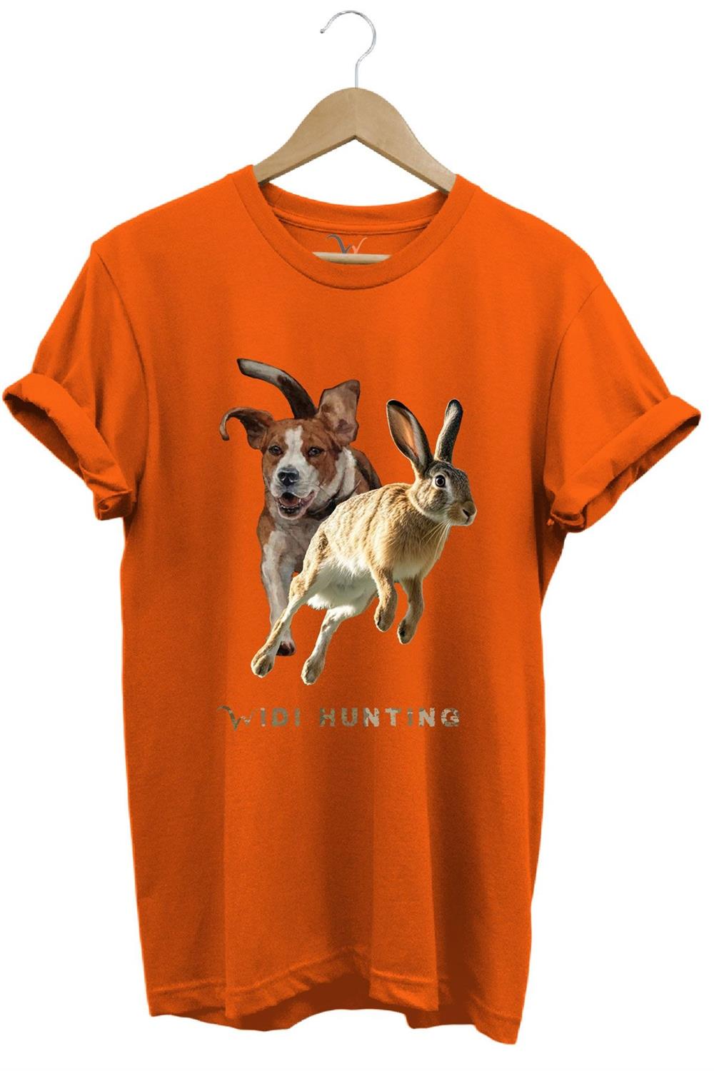 Avcılık Hunting Tavşan Avı Ve Av Köpeği Tasarım Baskılı %100 Pamuk Regular Fit Unisex T-Shirt - Turuncu (WİDİ659)