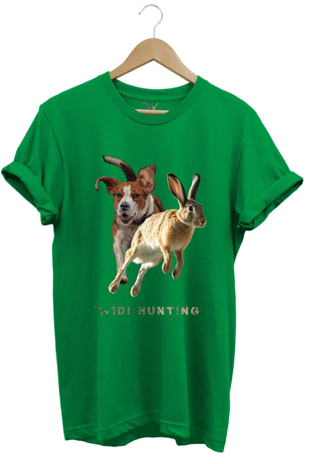 Avcılık Hunting Tavşan Avı Ve Av Köpeği Tasarım Baskılı %100 Pamuk Regular Fit Unisex T-Shirt - Yeşil (WİDİ659)