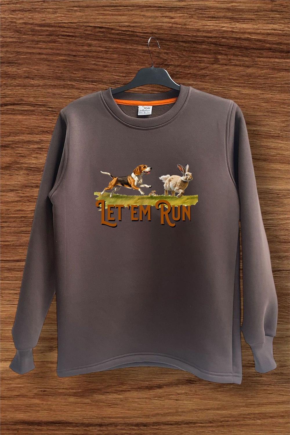 Avcılık Hunting Tavşan Avı Ve Avcı Köpeği Baskılı Regular Fit %100 Pamuk Sweatshirt - Kahverengi (WİDİ701)