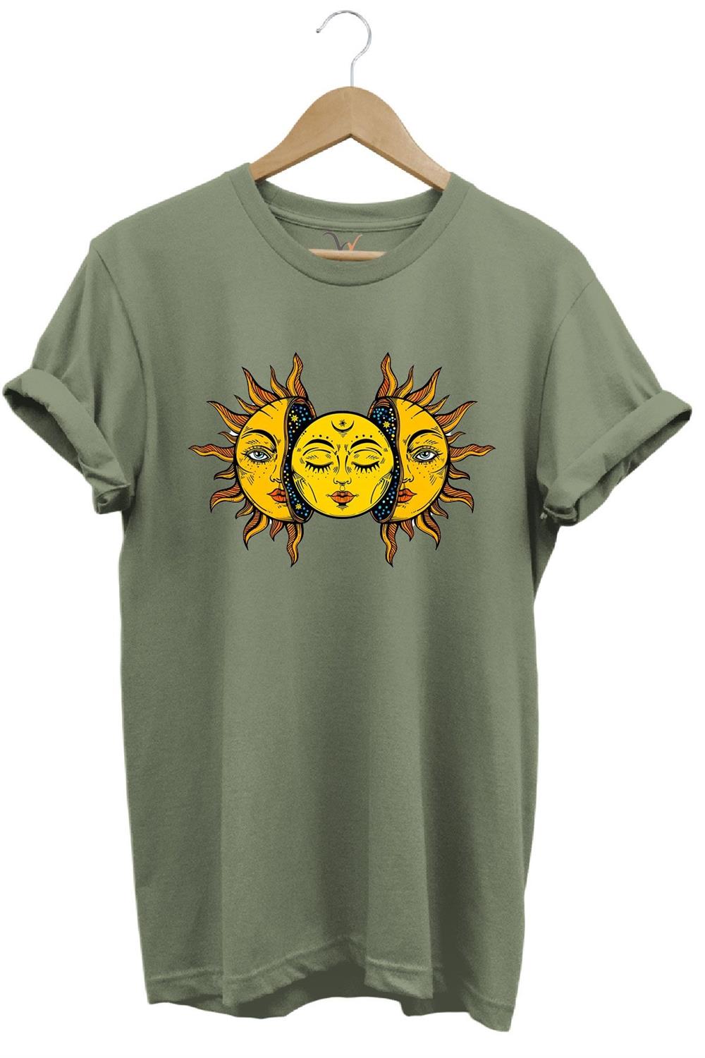 Güneş Baskılı %100 Pamuk Regular Fit Unisex T-Shirt - Haki (WİDİ648)