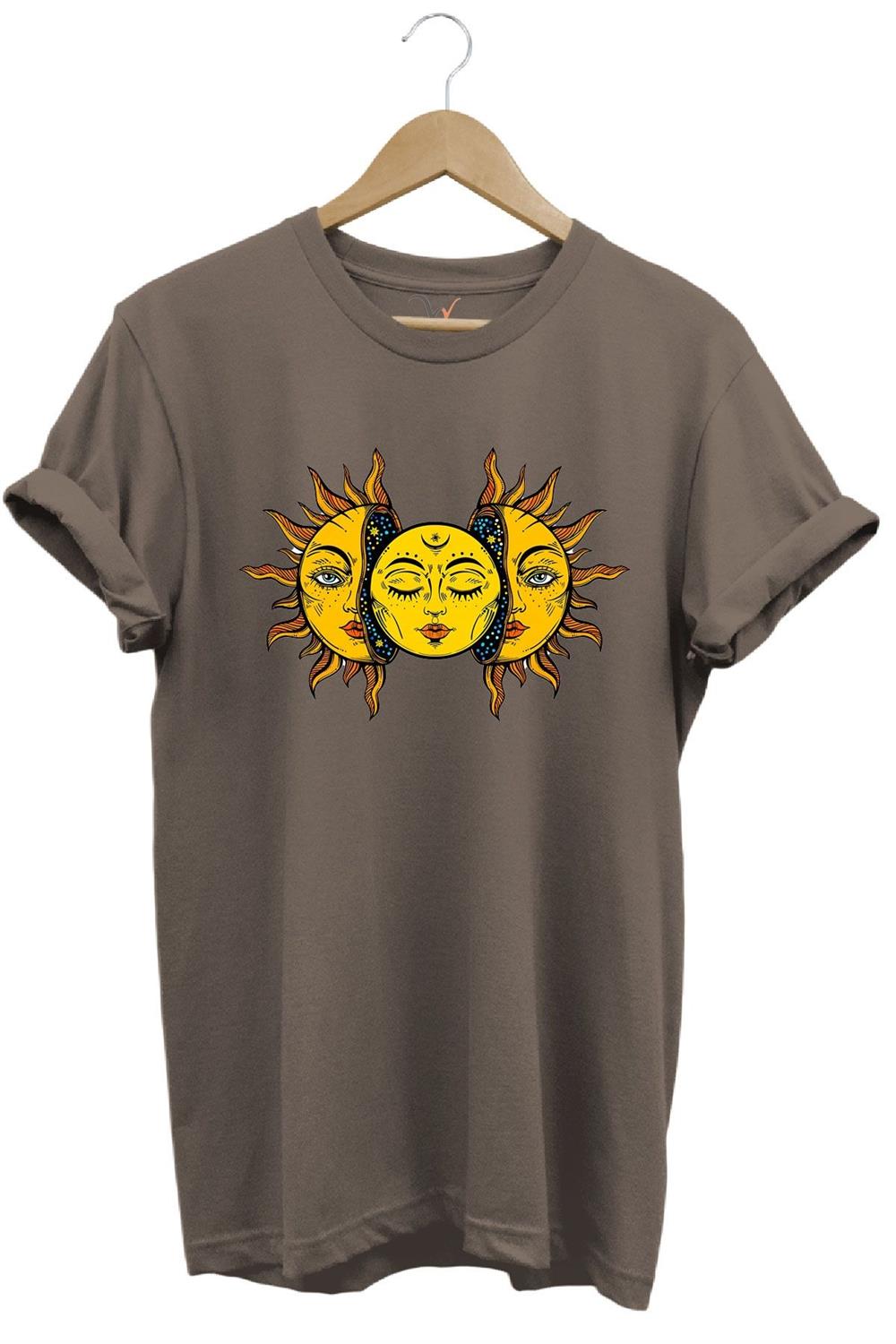 Güneş Baskılı %100 Pamuk Regular Fit Unisex T-Shirt - Kahverengi (WİDİ648)