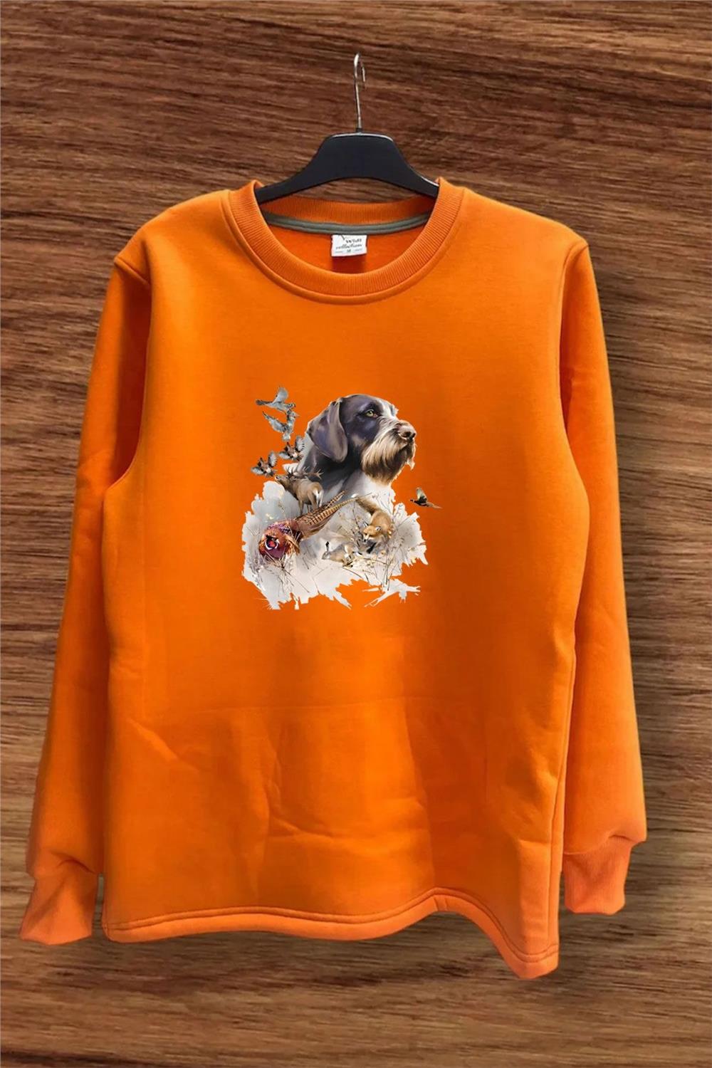 Hunter Avcılık Av Desenli Av Köpeği Ve Av Kuşu Baskılı Regular Fit %100 Pamuk Sweatshirt - Turuncu (WİDİ694)