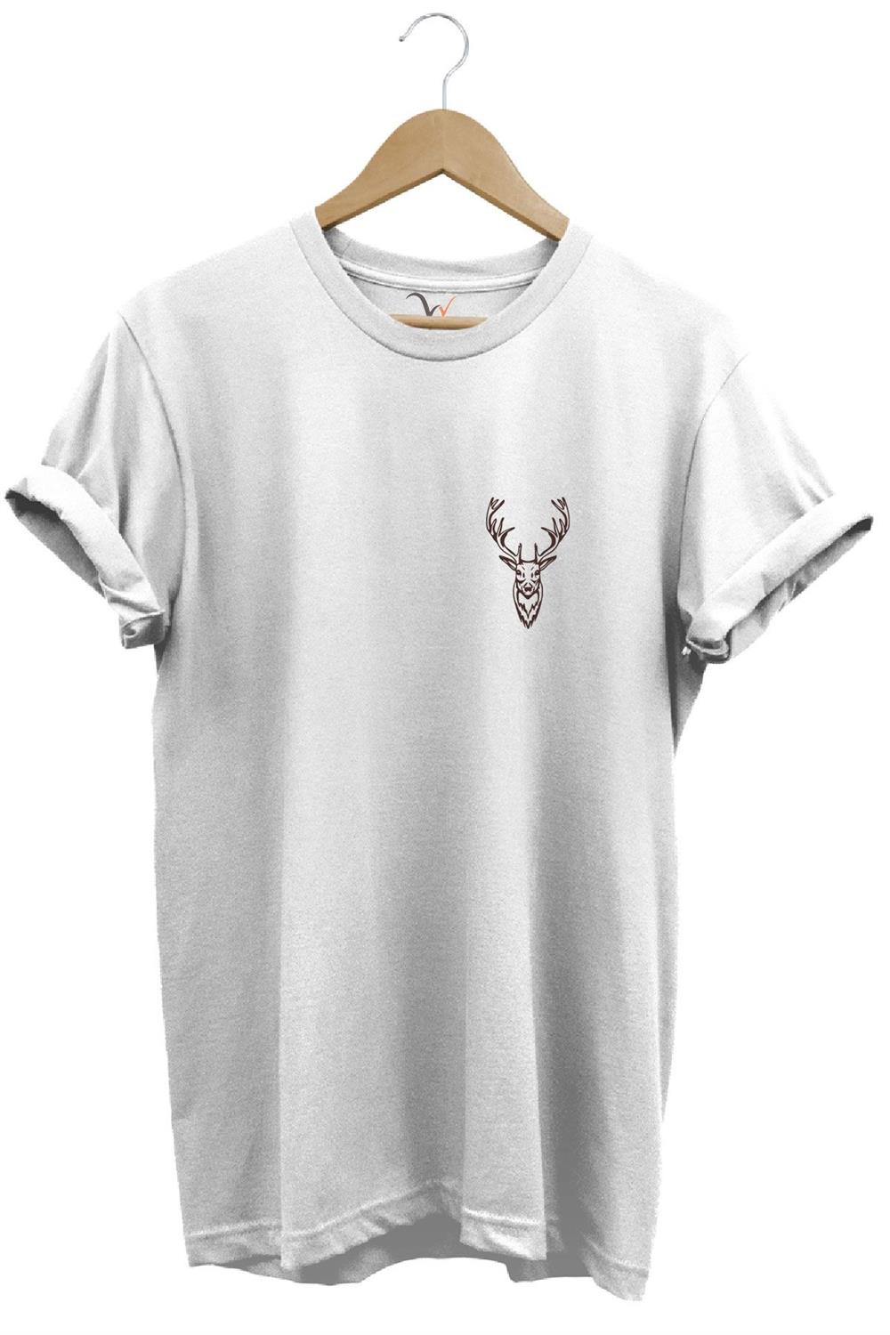 Hunting Avcılık Minimal Geyik Avı Baskılı %100 Pamuk Regular Fit Unisex T-Shirt - Beyaz (WİDİ669)