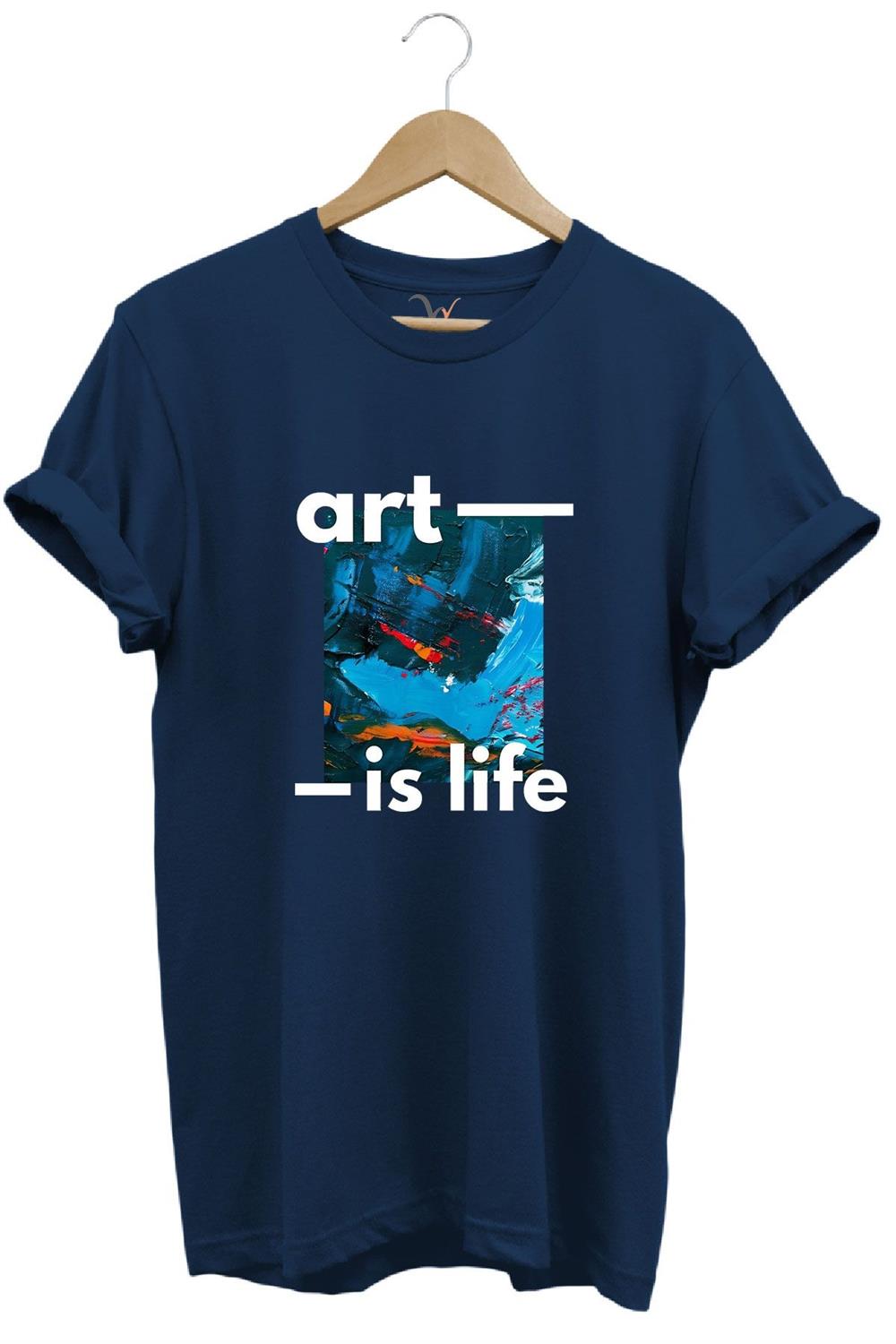 Sanatsal Renkli Tasarım Baskılı Art İs Life Yazılı %100 Pamuk Regular Fit Unisex T-Shirt - Lacivert (WİDİ650)