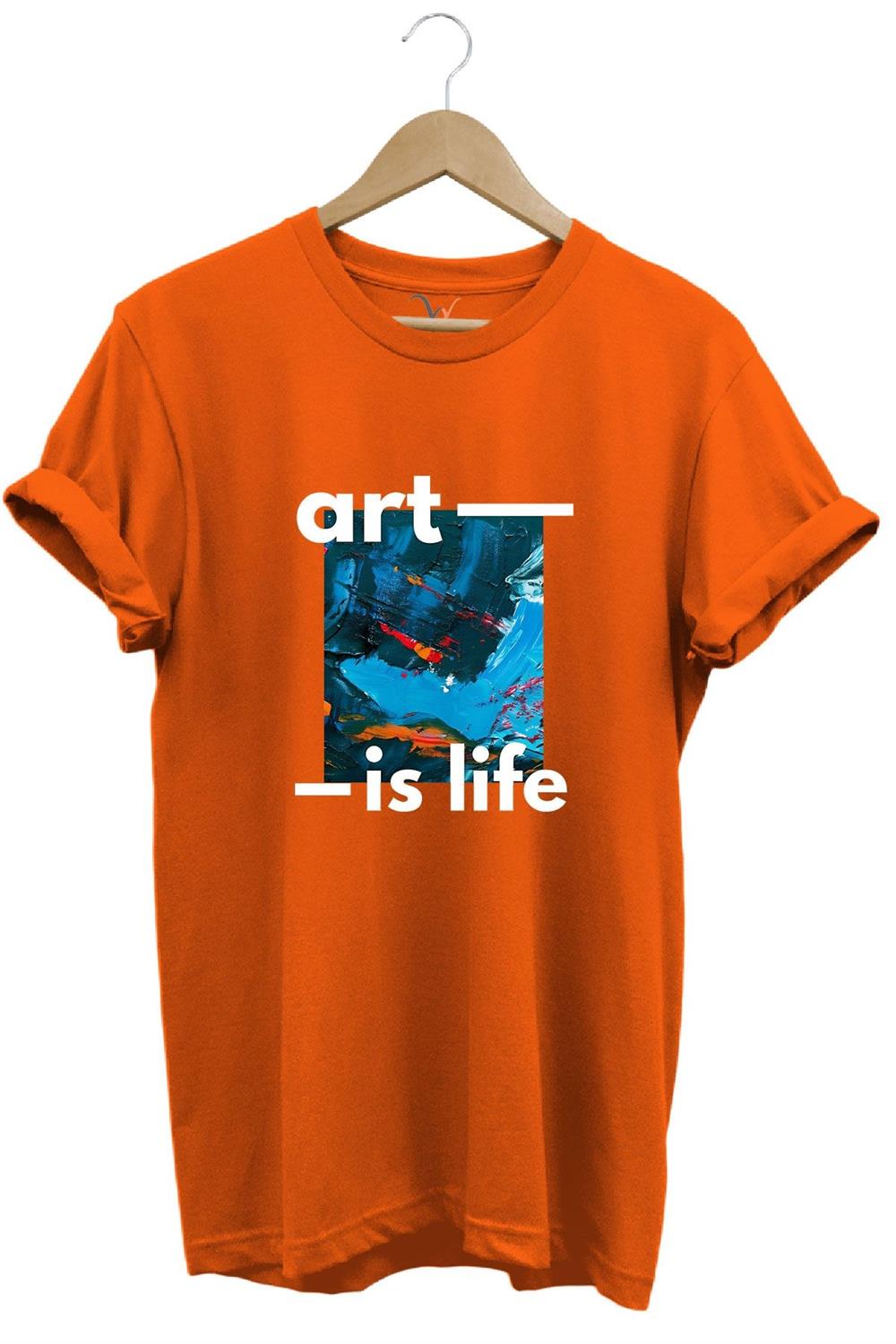Sanatsal Renkli Tasarım Baskılı Art İs Life Yazılı %100 Pamuk Regular Fit Unisex T-Shirt - Turuncu (WİDİ650)