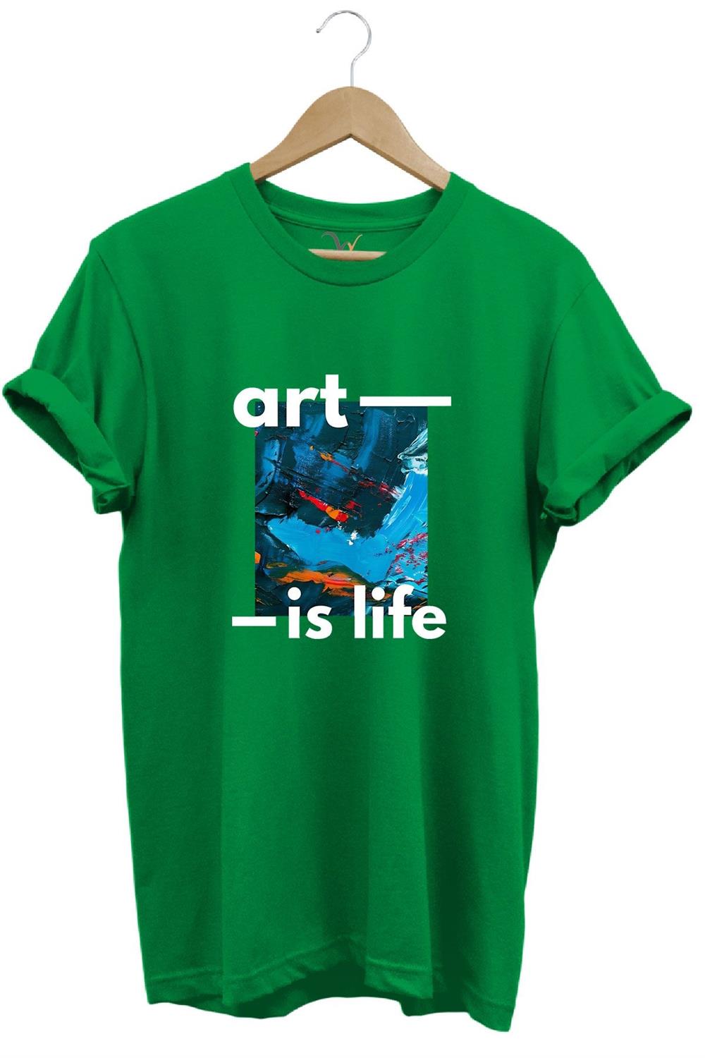 Sanatsal Renkli Tasarım Baskılı Art İs Life Yazılı %100 Pamuk Regular Fit Unisex T-Shirt - Yeşil (WİDİ650)