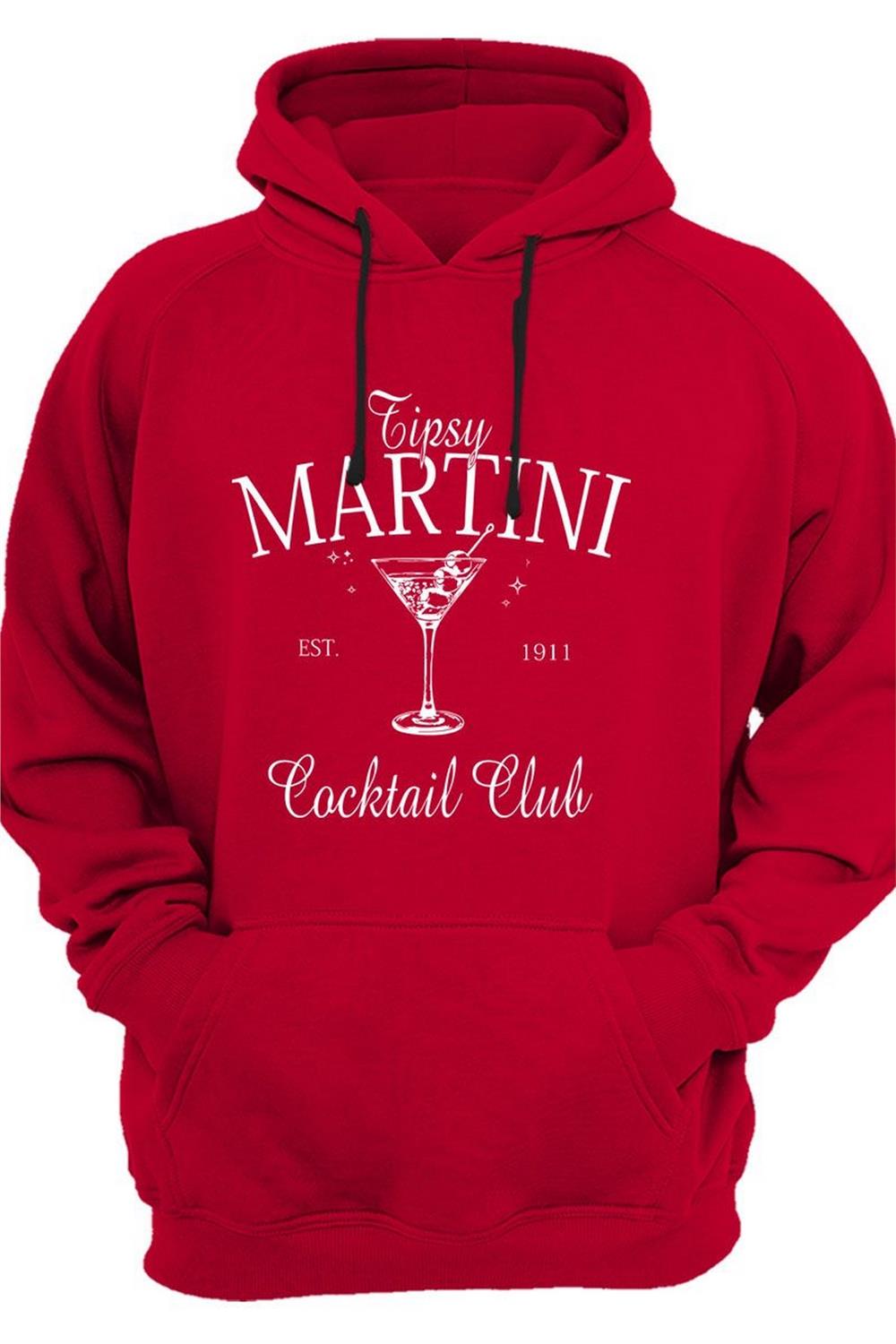 Tipsy Martini Cocktail Club Tasarım Baskılı Old Money Y2K 3 Iplik Şardonlu Kanguru Cepli Sweatshirt - Kırmızı (WİDİ688)